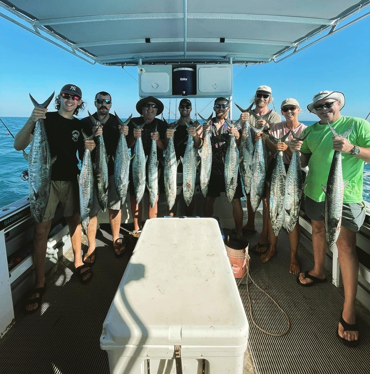 ‘Knotorious’ can carry a max of 23 + 2 crew but ideally we will cap our fishing charters at 12 anglers to ensure everyone onboard can fish comfortably. We also have the luxury of accommodating extra passengers (non fishing) for large group bookings or if you would like to bring along family/friends who prefer not to fish and just enjoy a day on the water.