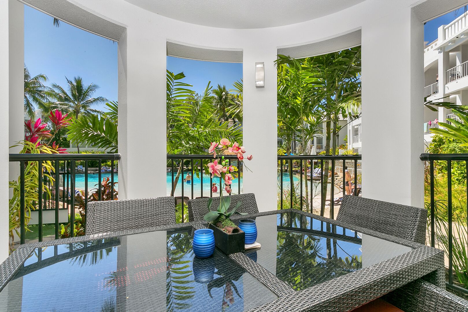 Guests of this beach apartment building will appreciate convenient onsite amenities such as a spa tub and a fitness center.