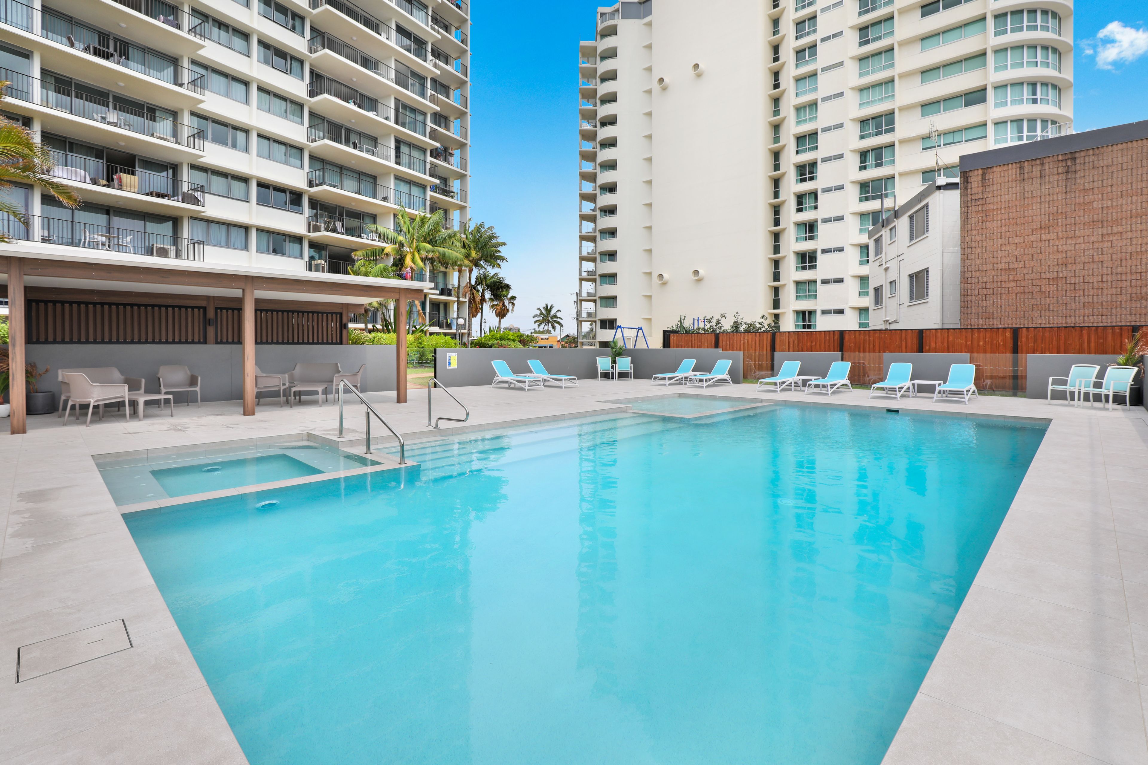Guests of this beach apartment building will appreciate convenient onsite amenities such as a spa tub and a sauna.