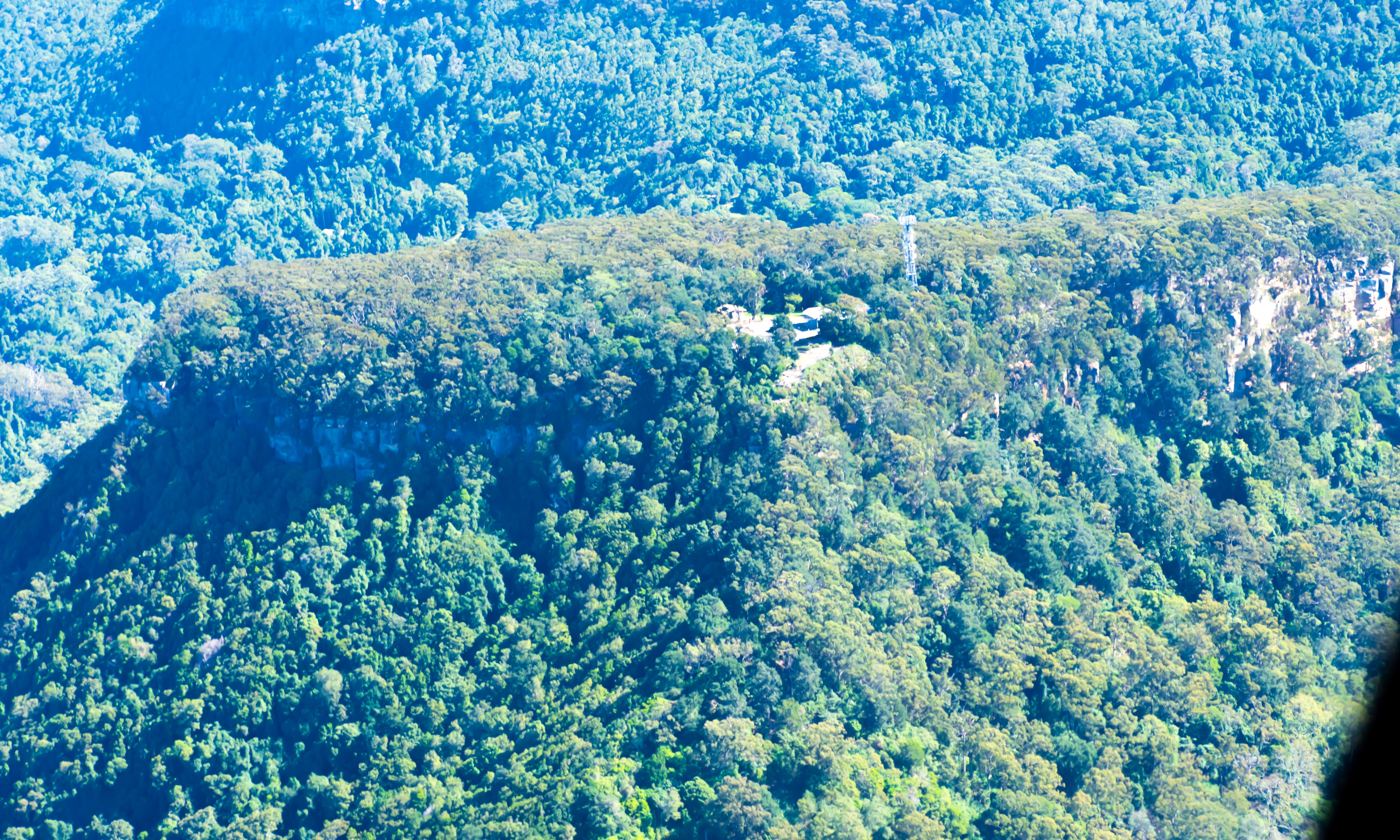 As we turn overhead Bellambi Point westward towards the mountains, next on the itinerary is Brokers Nose. A well known local feature and landmark, at 1440ft, it is easily identifiable by the television antennae sitting atop its most easterly prominence. Brokers nose is also the objective location of many of the walking tracks to be found atop the escarpment. It is one small part of The Illawarra Escarpment which stretches from the White Cliffs of the Royal National Park all the way down to Saddleback Mountain at Jamberoo.