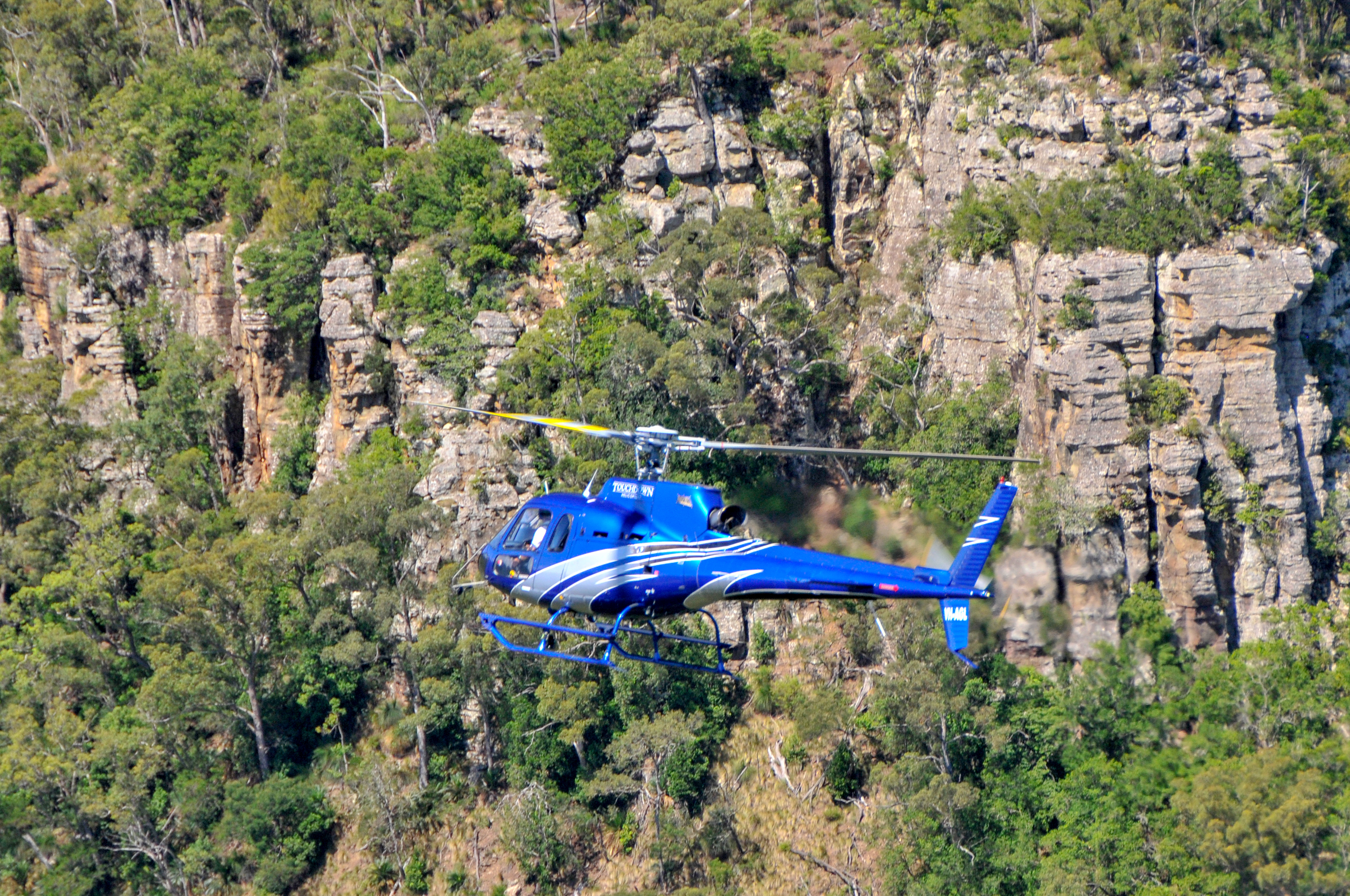 From the air, Carrington Falls is formidable. The top is about 550 meters above sea level and the pool at the base is 160m below. The dramatic chasm the falls has created is very narrow with sheer cliff walls on either side. Whether standing on the ground at the lookout overlooking the falls or sitting in your helicopter seat, looking down from the air you’ll be impressed by one of natures marvels.