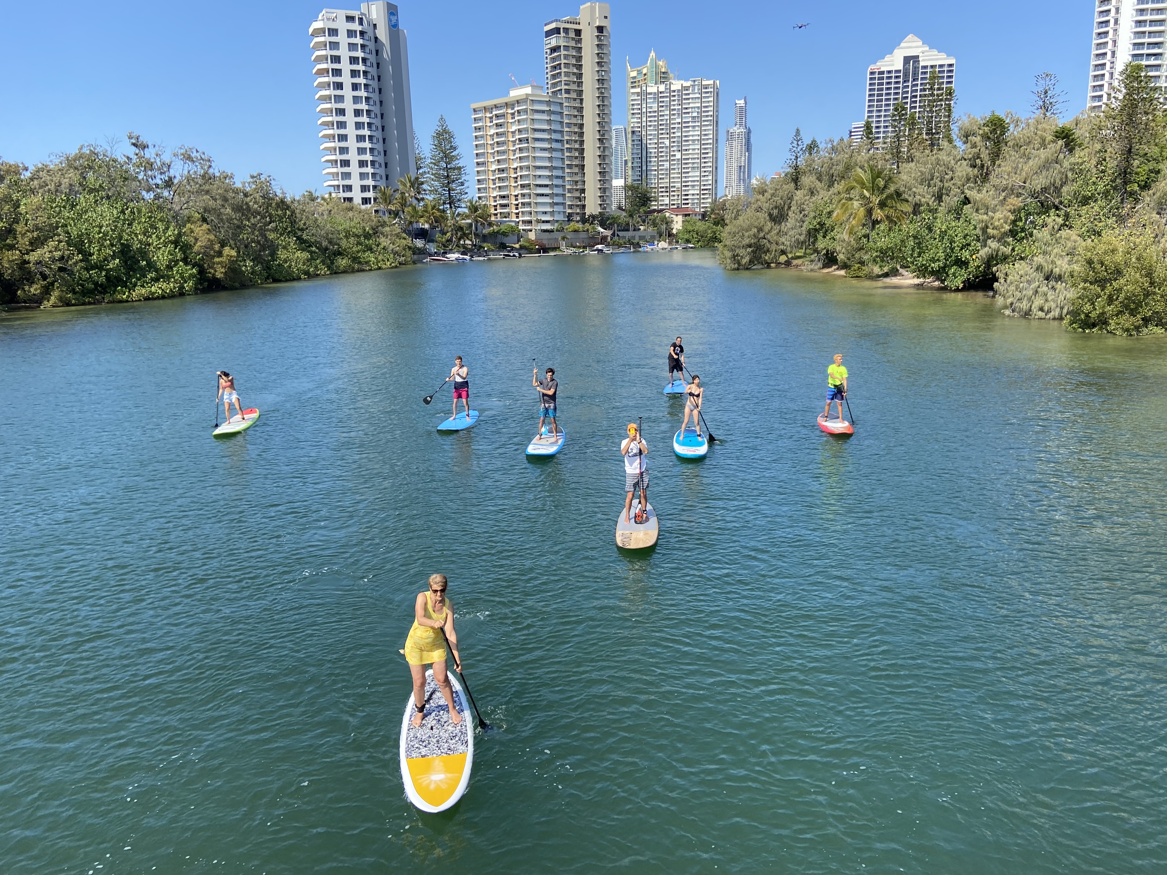 Imagine paddling past the high rise hotels of Surfers Paradise one minute, and the next, cruising past the mangroves enjoying nature at its best! Truly the best of both worlds. It’s an awesome feeling standing on your paddle board cruising with the dolphins & creating amazing photos for you to share with friends & family. After a rest stop, next on the agenda is cruising past the mansions of Paradise Waters then through to the peaceful mangroves of Macintosh Island Park where you will see an abundance of bird life, spot the family of peacocks or even dolphins!