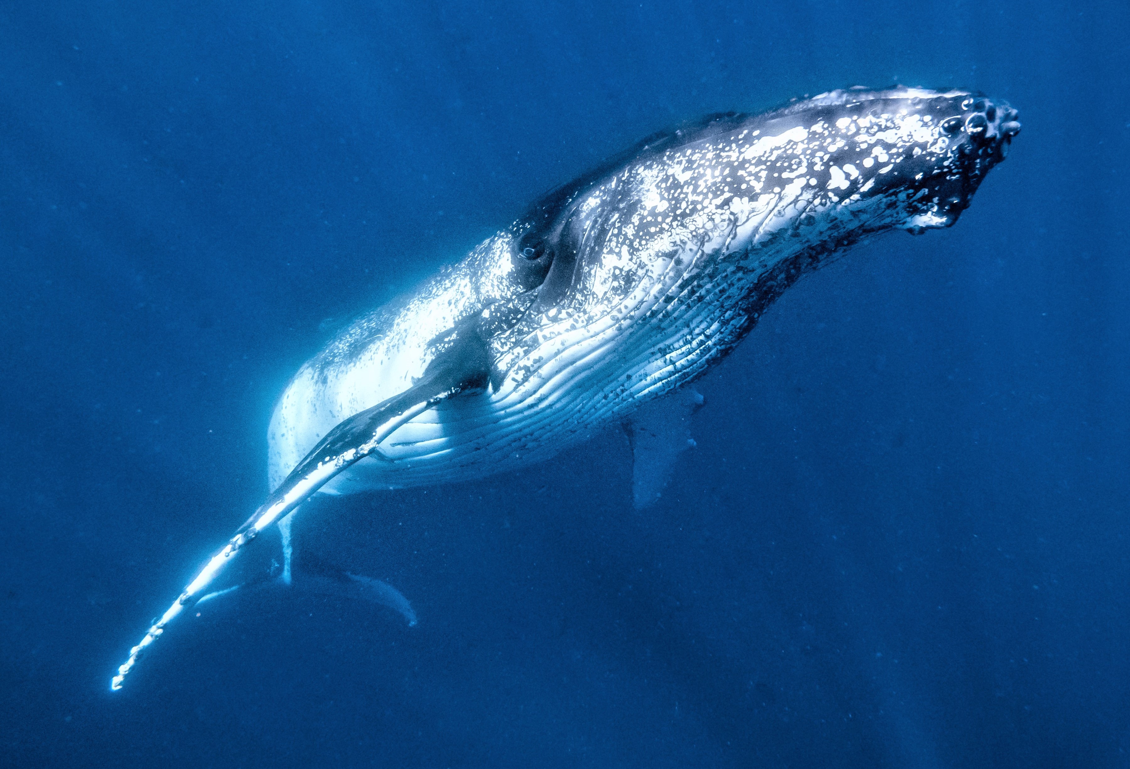 We also ensure there are no more than seven swimmers in the water with a guide and photographer for any encounter group. Fewer swimmers means less perceived risk and greater group coordination, all of which increases the likelihood of you swimming with a humpback whale.